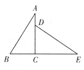 【变式2】如图,在 $ \text{Rt}\triangle ABC $ 中,$\angle ACB = 90^{\circ}$,$\triangle DCE$ 是 $\triangle ABC$ 绕着点 $ C $ 顺时针旋转得到的,此时点 $ B $,$ C $,$ E $ 在同一直线上。