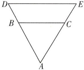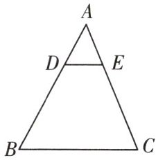 4. 如图,在$\triangle ABC$中,点D,E分别是AB,AC上的点,$DE// BC$,且$AD=\frac{1}{3}AB$,则$\triangle ADE$的周长与$\triangle ABC$的周长的比为