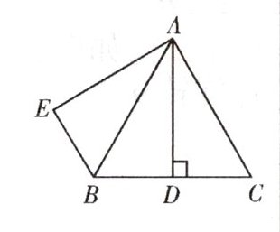 4. 如图,等边三角形 $ ABC $ 的边长为 2,$ AD \perp BC $。$\triangle ADC$ 顺时针旋转后到达 $\triangle AEB$ 的位置。