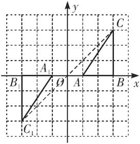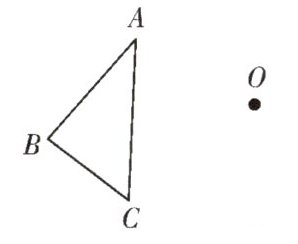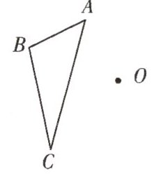 (人教九上P62教材改编)以点O为旋转中心,将△ABC按顺时针方向旋转180°,得到$△A_1B_1C_1,$在图中画出$△A_1B_1C_1;$