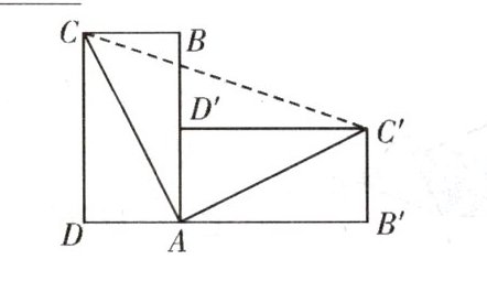 2. 如图,将矩形ABCD绕点A顺时针旋转90°后,得到矩形AB'C'D',如果CD= 2DA= 2,那么CC'=