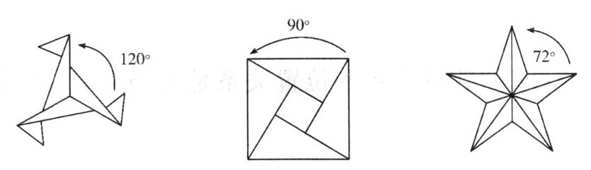 把正n边形绕着它的中心旋转$\frac{360^{\circ}}{n}$的整数倍后所得的正n边形与原正n边形重合.我们说,正n边形关于其中心有$\frac{360^{\circ}}{n}$的旋转对称.一般地,如果一个图形绕着某点O旋转角α后所得到的图形与原图形重合,则称此图形关于点O有角α的旋转对称,如图是具有旋转对称性质的一些图形.
