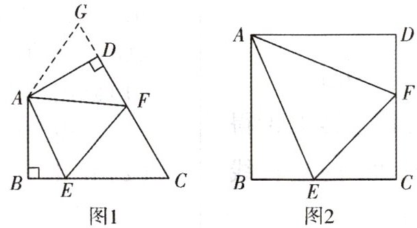 (2)如图 2,在正方形 $ ABCD $ 中, $ E $, $ F $ 分别在边 $ BC $, $ CD $ 上,且 $ \angle EAF = 45 ^ { \circ } $,连接 $ EF $, (1)中的结论是否仍然成立?若成立,请写出证明过程,若不成立,请说明理由.