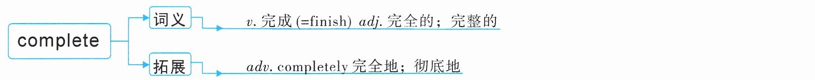 词义 v. 完成(= finish) adj. 完全的;完整的