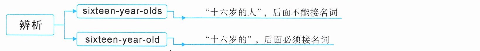 辨析 sixteen-year-olds "十六岁的人",后面不能接名词