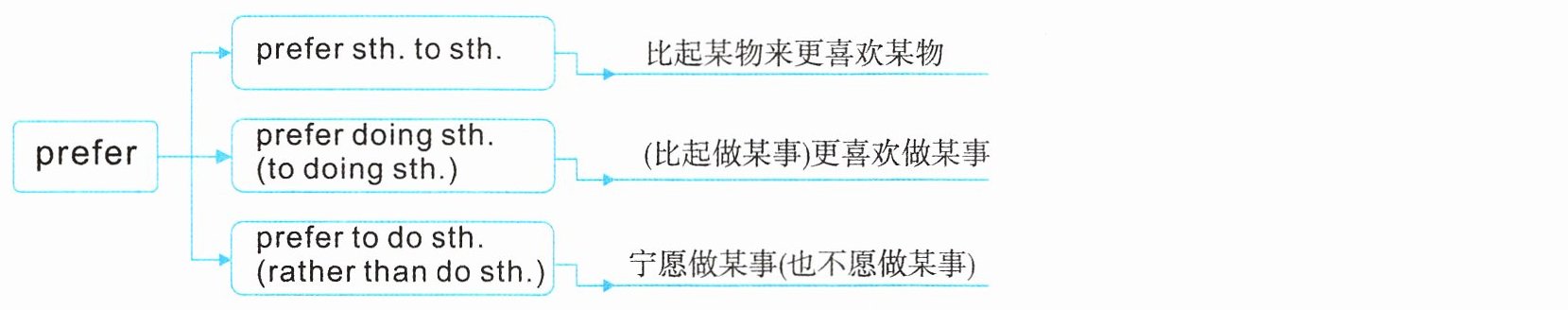 (1) 比起唱歌我更喜欢跳舞。I prefer ______ to ______ .