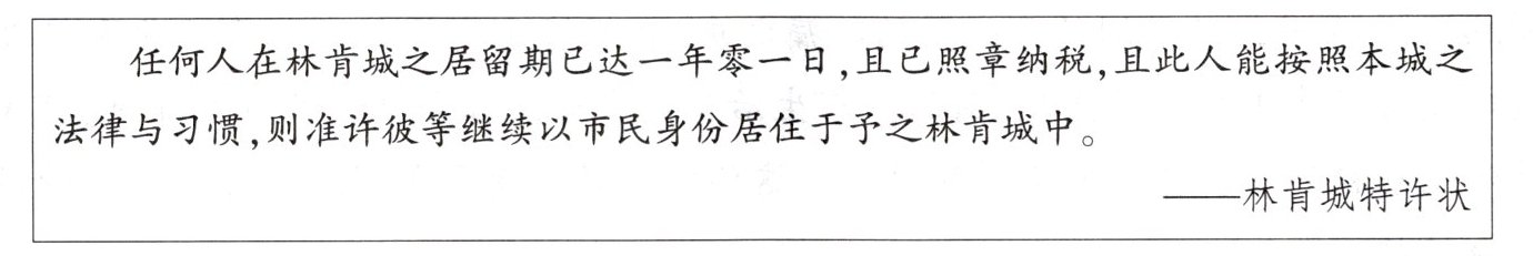 3.阅读下图,下列观点与林肯城特许状的内容相符合的是 (