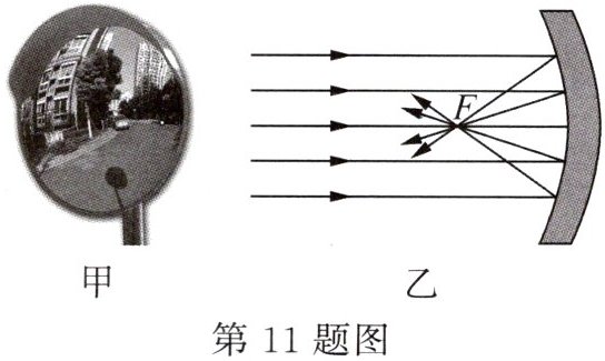 (1)由图甲可知,该镜面外凸,为凸面镜,凸面镜对光有发散作用,成的像是缩小的虚像;凸面镜与平面镜成像原理相同,都是光的反射形成的。