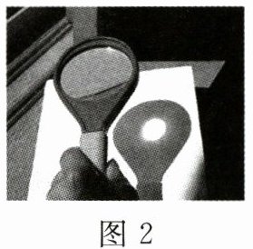 (2)小红采用与小明同样的方法,如图2所示,当白纸上出现一个较大的光斑时,光斑到凸透镜中心的距离为$L$,当凸透镜远离白纸的过程中光斑一直变大,则该凸透镜的焦距____(选填“大于”或“小于”)$L$。
