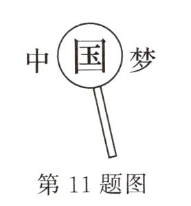11.(2024·江苏连云港·3分)小明将凸透镜正对太阳光,在距离凸透镜10cm的白纸上呈现一个最小、最亮的光斑,此凸透镜的焦距为____cm.如图所示是他用该凸透镜观看书本上"中国梦"三个字时的情况,如果他想看到更大的正立的"国"字,小明需要将凸透镜____(选填"远离"或"靠近")书本,凸透镜和书本的距离应满足的条件是____.