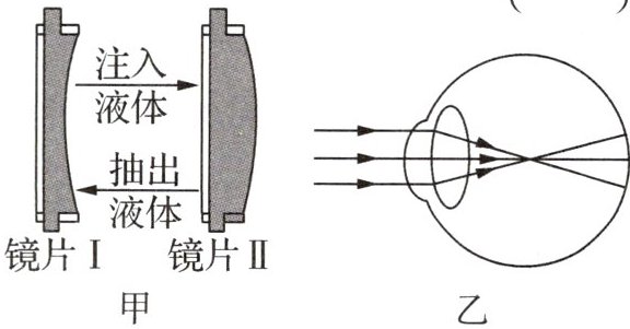 典例2 为满足特殊人群的需求,有一种眼镜的镜片可以改变(如图甲所示),它的改变是通过在透明的薄膜中注入或抽出光学液体来实现的.图乙是某人看远处物体时的成像情况,此时该人的视力缺陷和矫正时应选择的镜片是()