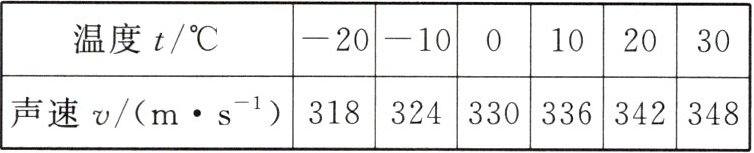 (3)根据表格数据,15℃时,空气中声速为$336m/s+\frac{342m/s - 336m/s}{2}=339m/s$.