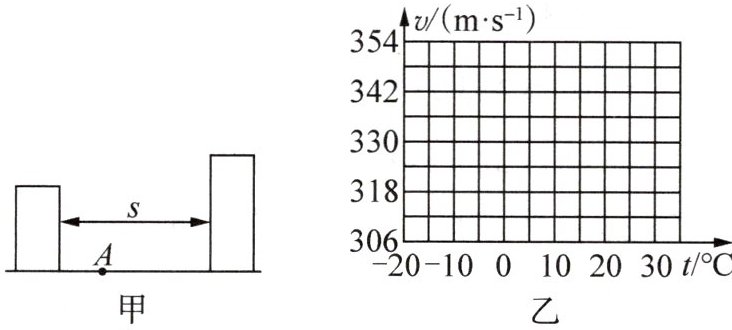 (4) 如图甲,小蓝站在两楼间A处,大喊一声,手机分别在0.4s后、0.6s后接收到两次回声. 手机显示此时气温为$0^{\circ}C$,则两楼间距为____m.