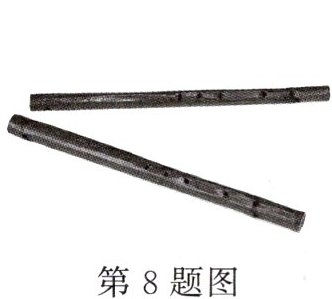 8.(2024·四川凉山州·2分)如图所示是中国古代雅乐横吹竹制管乐器——篪(chí),其形似于笛,与笛不同的是两端都是封闭的,而且吹孔与指孔不在同一直线上,无孔膜而“有底”.演奏过程中手指按压不同孔时改变的是 ()