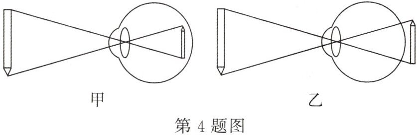 B 解析:图甲中的像成在视网膜的前方,因此表示的是近视眼,近视眼是由于晶状体对光的会聚作用太强,应该戴对光具有发散作用的凹透镜矫正;图乙中的像成在视网膜的后方,因此表示的是远视眼,远视眼是由于晶状体对光的会聚能力较弱,应该戴对光具有会聚作用的凸透镜进行矫正。故B正确。