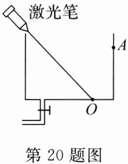 20. 如图所示,一支固定好的激光笔向空水槽底部固定点O打出一束激光。向水槽内加水使水上升至A点,此时光斑在O点______侧,打开水槽底部水龙头缓慢放水,同时观察到水槽底部光斑向______移动。