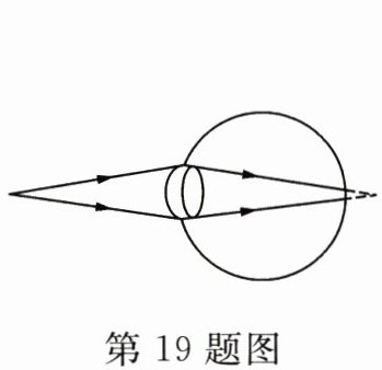 19. 人的眼球好像一架照相机,晶状体和角膜的共同作用相当于______镜,来自物体的光在视网膜上形成物体的缩小、______的实像。如图是某人看近处物体时的光路图,由图可知他是______(选填“近视”或“远视”)眼。若他戴的眼镜镜片中心的厚度为2.7mm,则该镜片边缘的厚度应______(选填“大于”“等于”或“小于”)2.7mm。