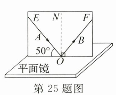 25.(6分)(2025·重庆期中)在“探究光的反射定律”的实验中,如图所示,水平放置平面镜,白色纸板竖直立在平面镜上,纸板由E、F两部分组成,可以绕ON翻折。