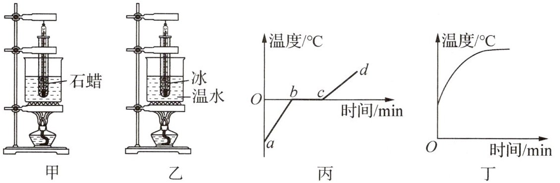 (3)根据探究石蜡、冰的熔化过程,记录了较长一段时间的实验数据,并作出温度随时间变化的图像如图丙、丁所示,其中石蜡的图像是图 (选填“丙”或“丁”),请你写出一种和石蜡熔化特点相似的物质,如 ;小明记录石蜡熔化的图像(始终没有沸腾),发现最后石蜡温度不再升高,你认为这是由于 。