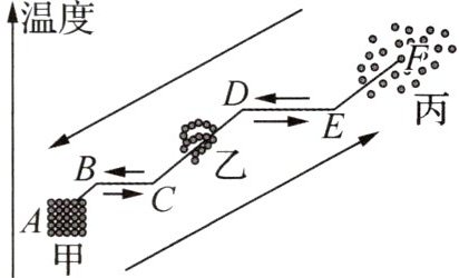 【思路分析】根据分子的排列情况可知,甲、乙、丙分别为固态、液态、气态,甲→乙是固态变为液态,乙→丙是液态变为气态;BC段物体吸热,但温度不变,属于晶体的熔化过程.