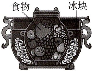 (1) 冰:冰鉴是我国的“原始冰箱”,如图是一件双层器皿,鉴内有一缶,鉴、缶之间装冰块,缶内装食物. 冰鉴是利用冰______(填物态变化名称),______热量达到保鲜效果.