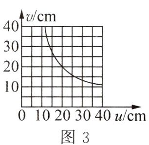 (3)如图3所示是李明通过实验得到的凸透镜的像距v和物距u的关系图像,由图像可知凸透镜的焦距是____cm.
