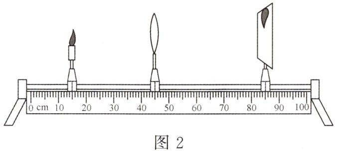(2)李明在实验中发现光屏上成的烛焰的像偏上(如图2所示),是因为忽略了实验中的一个操作步骤,此时他可以将蜡烛向____移动.