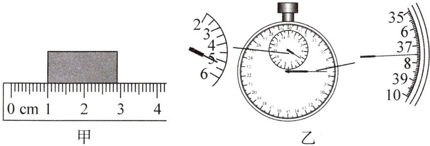 典例2 (2025·四川成都期末)如图甲所示,用刻度尺测量木块的长度,所测木块的长度是______cm;如图乙所示,用机械秒表测量慢跑时间,读数为______