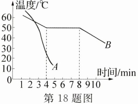 18. 如图所示是两种物质的凝固图像,由图像可知,____(选填“A”或“B”)是晶体;从图中的凝固曲线可以看出,该物质凝固需要的时间为____min,且其凝固过程中,需要不断地放热,温度____。