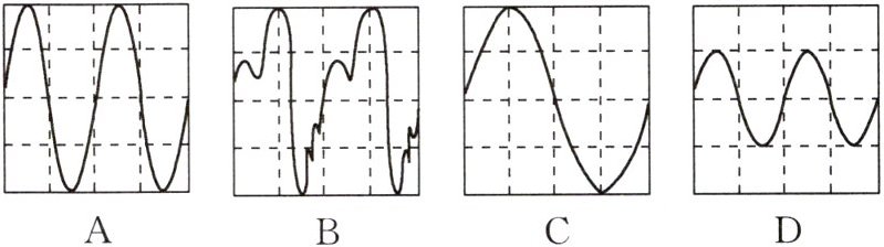A、B、D A、B、C 解析:声音的音调与频率有关,响度与振幅有关.由图可知,在相同时间内A、B、D的振动次数相同,即振动频率相同,因此A、B、D的音调相同;由图可知,A、B、C波形偏离中间位置的幅度相同,即振幅相同,所以A、B、C的响度相同.