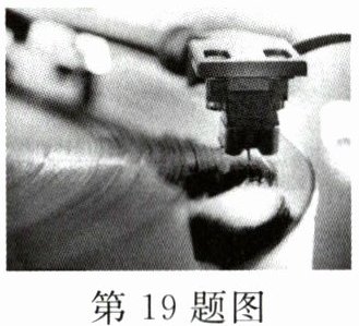 19. 如图所示是机械唱片表面的放大图,当唱针划过唱片上不规则的沟槽时,____(选填“唱片”或“唱针”)产生不同频率的振动,就会听到扬声器中声音的____不同。唱片播放的音乐对于正在学习、需要安静的小明来说,属于____(选填“乐音”或“噪声”)。