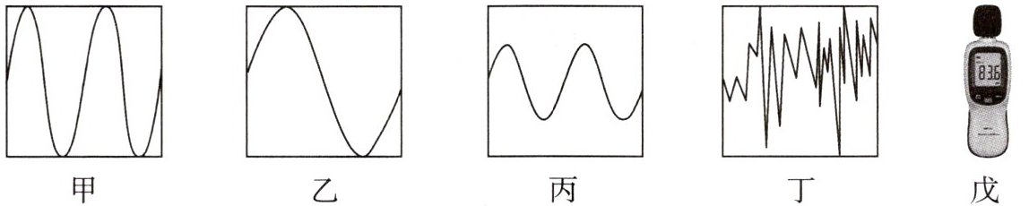 (1) 噪声是发声体无规律振动产生的声音,所以丁图是噪声的波形图.