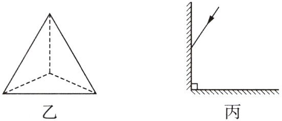 (2) (2024·四川泸州)如图乙是随嫦娥六号一起发射的角反射器的示意图,其三个反射面相互垂直,其中两个反射面如图丙所示,一束光只在这两个反射面发生了反射,请在图丙中画出这束光反射的光路图(保留作图痕迹).