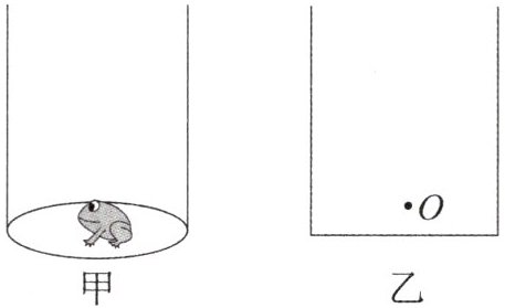 1. “井底之蛙”这个成语大家都很熟悉.如图甲所示,枯井中的青蛙位于井底“坐井观天”.请在图乙中画出青蛙(眼睛用点O表示)通过井口观察到的天空范围的光路图.
