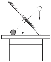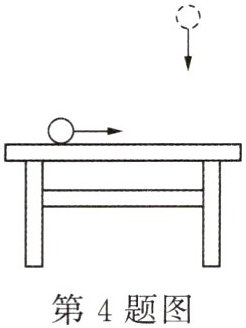 4. 如图所示,在水平桌面上有一个小球向右滚动,小球在平面镜中的像竖直向下运动,请在图中画出该平面镜的位置.