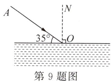 9.(3分)如图所示,一束光与水平面成35°角斜射到平静的水面上,则反射角为____;若入射角增大5°,则反射光线和入射光线夹角为____;当逐渐增大入射角时,折射光线将____(选填"靠近"或"远离")法线.