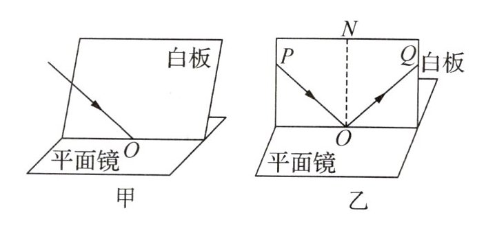 (2)小明在图乙的基础上改变入射光的方向,将实验数据依次记录到表中.由数据可知:入射光线PO在逐渐____(选填"靠近"或"远离")法线ON,且反射角与入射角大小____.