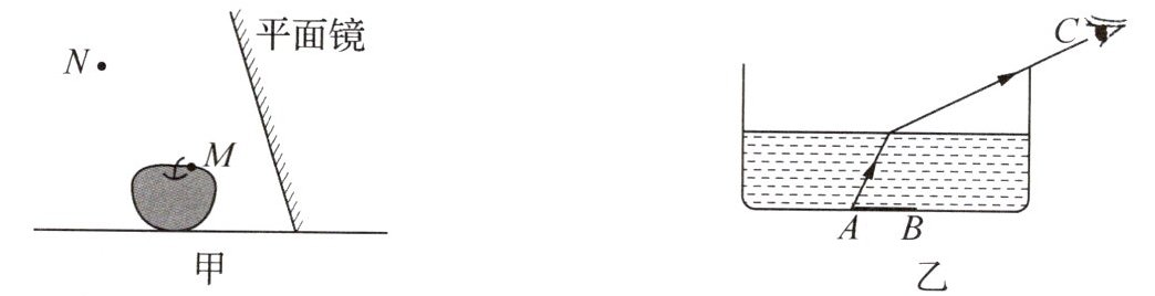 (1)如图甲所示,M是苹果上的一点,N是人眼的位置,请画出M点在平面镜中的像M'及M点发出的一条光线经平面镜反射后经过N点的光路图.