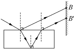 (1)粗糙 $90^{\circ}$ 反射光线与入射光线、法线在同一平面内 (2)远离 相等 (3)靶心B的像 (4)下移 解析:(1)探究光的反射定律的实验中,应该选择表面粗糙的白纸板显示光的传播路径,使光线在纸板上发生漫反射,便于观察。当白板与镜面垂直,即白板与镜面成$90^{\circ}$角时,法线也在白板上,此时才能同时呈现入射光和反射光,说明反射光线与入射光线、法线在同一平面内。(2)由表格数据可知,入射角在逐渐增大,因此入射光线PO在逐渐远离法线ON,且反射角与入射角大小相等。(3)靶心B反射的光经平面镜反射后,反射光线经过A点,则反射光线的反向延长线会经过靶心B的像。由光路可逆可知,激光笔对着靶心B的像照射时,其反射光线将击中靶心B。(4)当将平面镜改为下表面反射镜时,光从空气中进入平面镜的上表面时会发生折射,折射角小于入射角;折射光线到达平面镜的下表面时发生反射,反射角等于入射角;反射光线又从平面镜中进入空气发生折射,折射角大于入射角,折射光线沿直线传播,导致亮斑下移,如图所示。