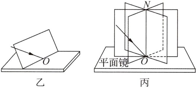 (2) 图乙中,保持入射点O不变,改变入射光的方向,调整白板,使白板上仍能同时呈现入射光和反射光,最终发现符合要求的白板上有一个共同的位置,如图丙所示,物理学中在研究光的反射时,将ON称为____.