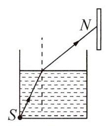 7. 如图,鱼缸底部点光源S发出的光线经过水面照亮挡板上N点,当鱼缸内水面上升高度d后,挡板上M点(图中未画出)被照亮,则M点和N点间的距离 ()
