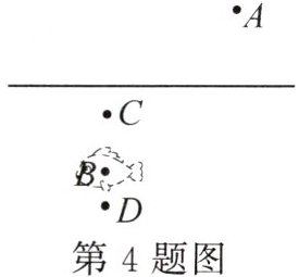 4. 如图所示,渔夫的眼睛在A处看到B处有一条鱼,眼睛看到的是______(选填“C”或“D”)处鱼的像,这是由于光发生折射,折射角______(选填“小于”“等于”或“大于”)入射角.若在A处发射一束光照亮水中的鱼,光束应朝向______处.