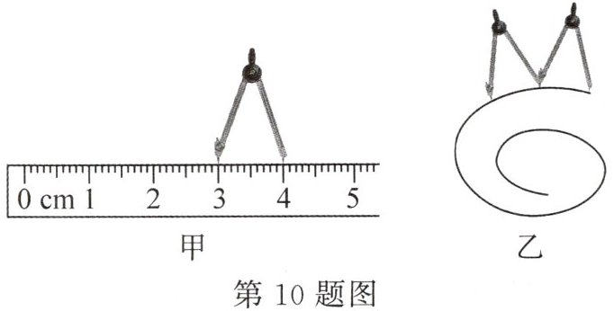 ① 将圆规两脚分开一小段距离,用刻度尺测出圆规两脚间的距离,如图甲;