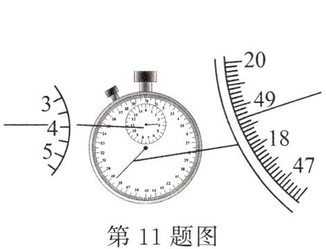 11.(2分)上分点二 清晨,王爷爷绕小区花园步行锻炼身体,借助手中的仪器(如图所示)测量了自己步行一圈的时间为______s,该测量工具外圈(大圈)的分度值为______s.