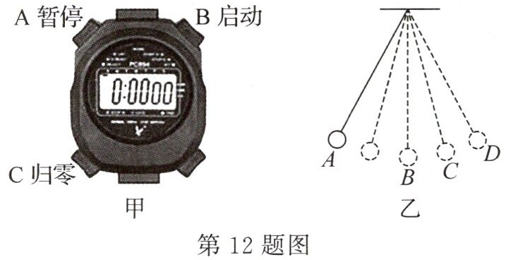 (2)某小组同学为了测量图乙所示的单摆摆动一次的时间,他将摆球从A点静止释放,摆球还会经过B、C、D三点,其中B为最低点,D为另一侧的最高点,随后摆球在A、D间往复摆动.