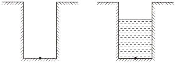 11. 新素养科学思维 如图所示,有井口大小和深度相同的两口井,一口是枯井,一口是水井(水面在井口之下).两井底部中间位置各有一只青蛙,则 ()