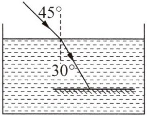 7. 如图为一束光从空气射入某液体中的光路图.经测量入射角为45°,折射角为30°.光线经液体内的水平平面镜反射后,又回到空气中的折射角为 ()