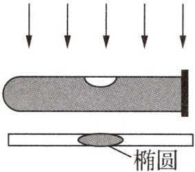 8. (2025·河北石家庄期中)如图所示,装有水的圆柱形试管内留有一稍大空气泡,将试管水平放在白纸上方,让太阳光竖直照射到试管上,可以发现白纸上与空气泡相对应的位置上有一椭圆,而其他部分竟是一条与试管平行的亮线.下列分析错误的是 ()