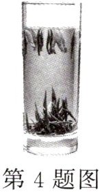 4. 中国的茶文化在宋朝时已名扬世界,反映出中华民族悠久的文明和礼仪.如图所示,透过玻璃,我们看到的是由光的______(选填“反射”“折射”或“直线传播”)形成的绿茶的虚像;因为加水后的玻璃杯相当于一个凸透镜,叶片处于______(选填“一倍焦距内”“二倍焦距外”或“大于一倍焦距、小于二倍焦距”)范围.