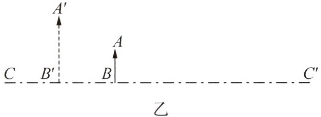 (2)(2025·山东德州期末)如图乙所示,AB是物体,A'B'是经过凸透镜所成的像,CC'是主光轴.在图中画出凸透镜的位置并标出透镜右焦点F.